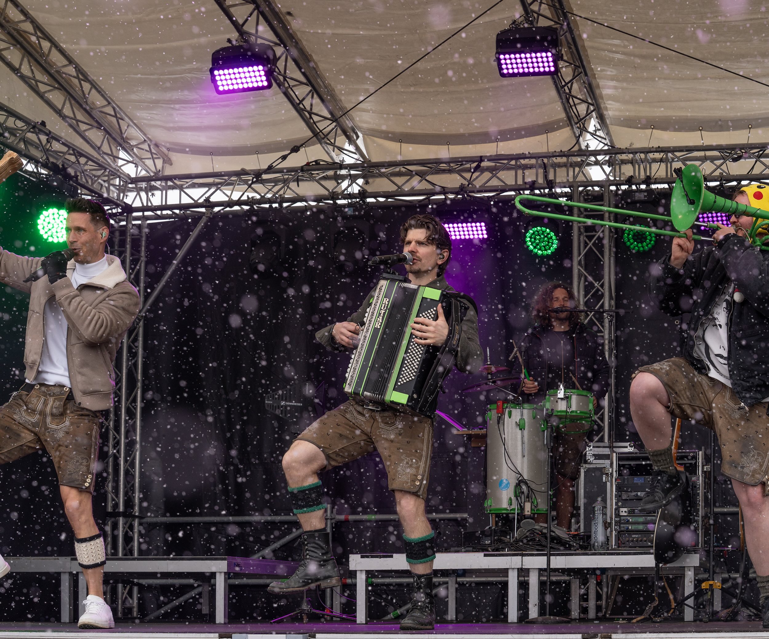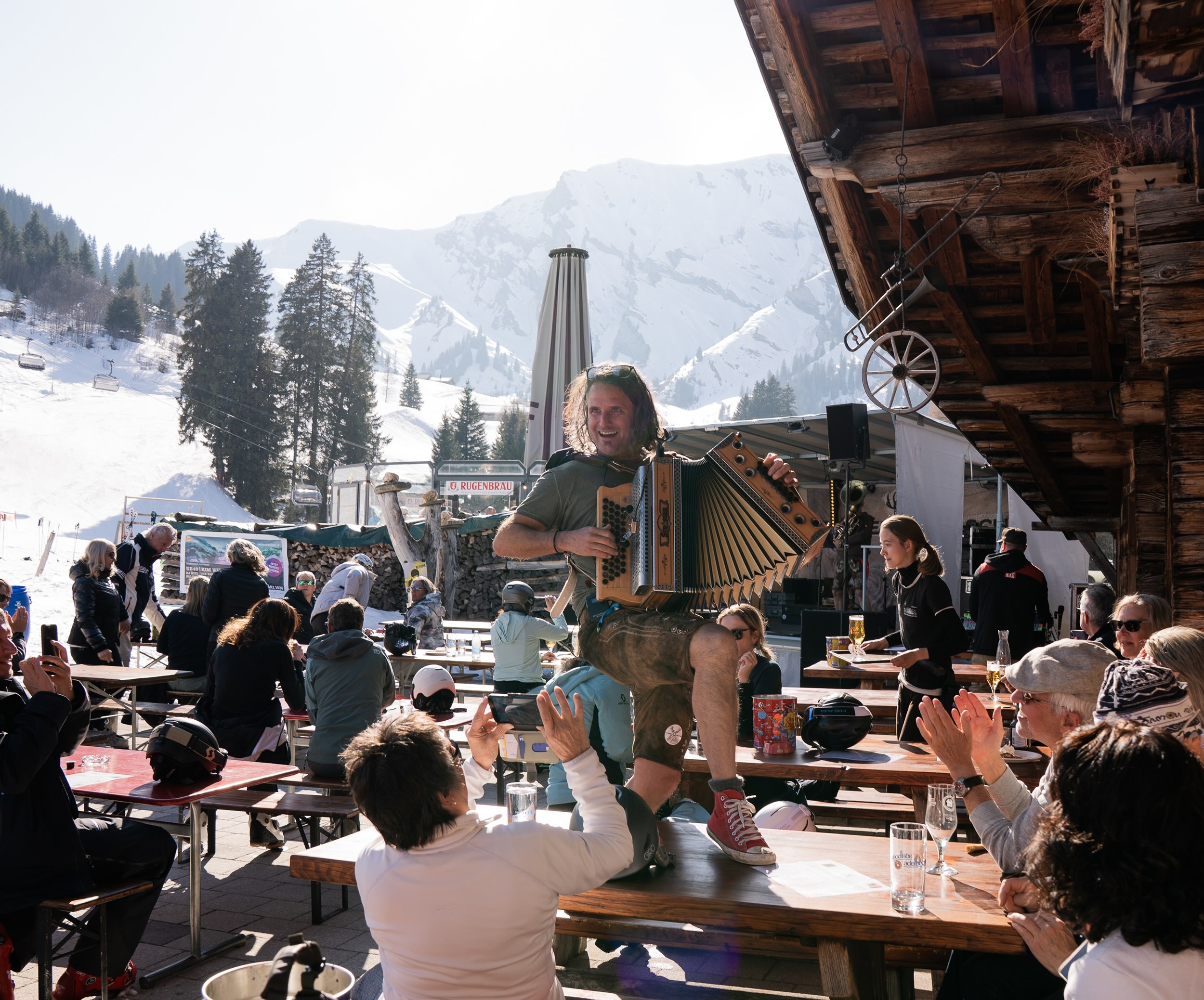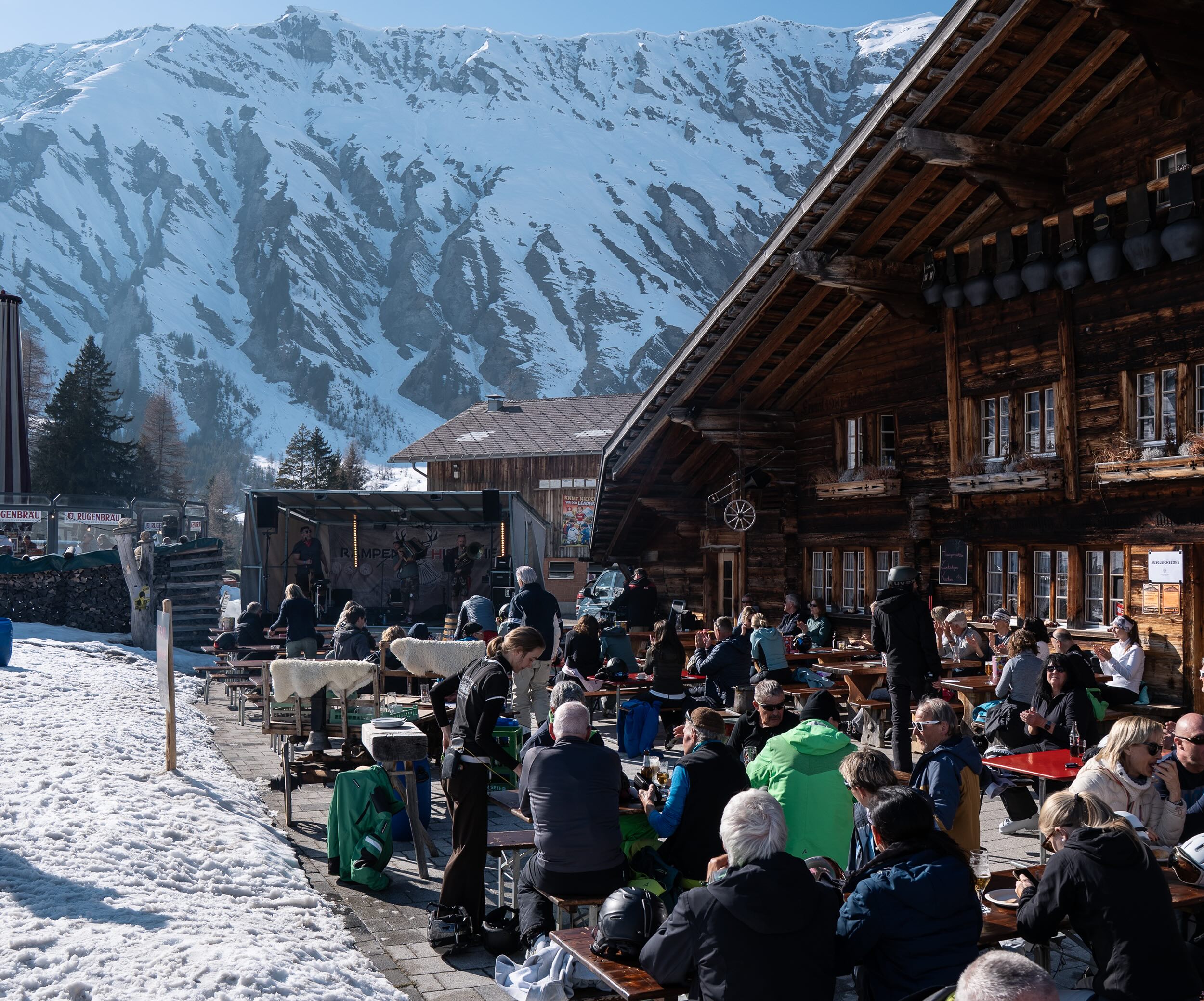 Mit Humor, Lebensfreude und Team-Dynamik bringen sie Hits wie «Richi» oder «Petra Sturzenegger» auf die schneereichen Pisten von Adelboden. Wer nach einem anstrengenden Skitag noch genügend Energie hat, ist hier absolut am richtigen Ort.