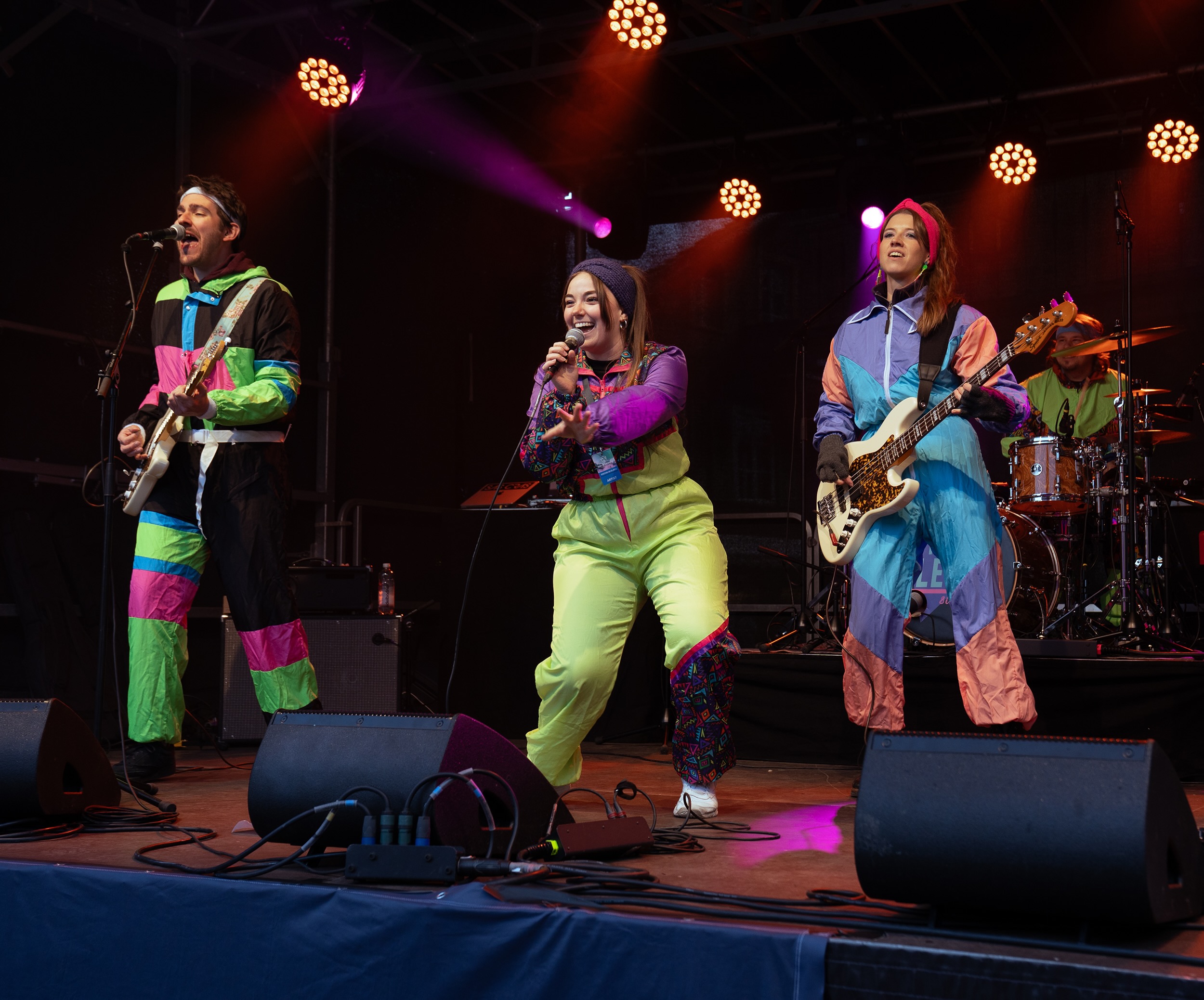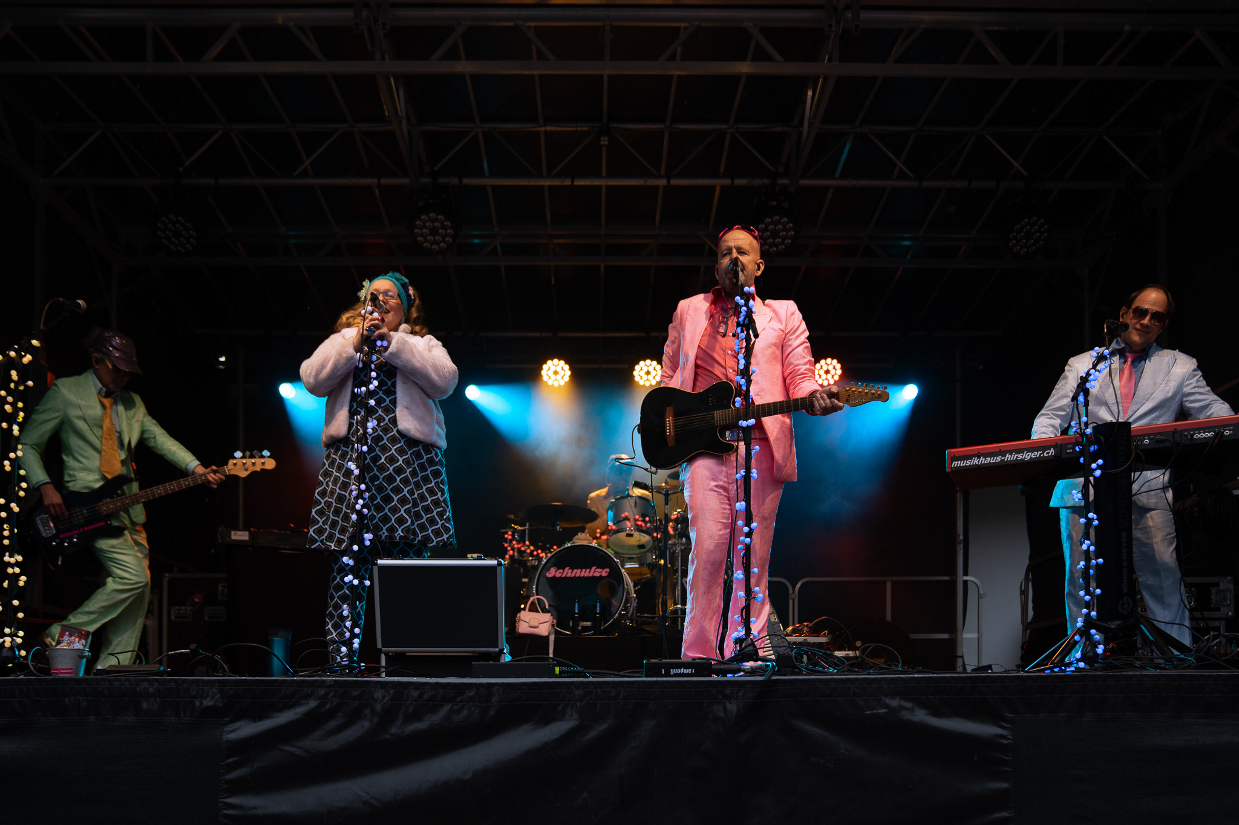 In wunderbarem Bärndütsch, aber auch mal auf Französisch und stilistisch irgendwo zwischen Rock, Rap und Latin Pop. Vielfältig, aber immer mit viel Energie und Spass auf der Bühne. Tanzen ist hier Pflicht!
